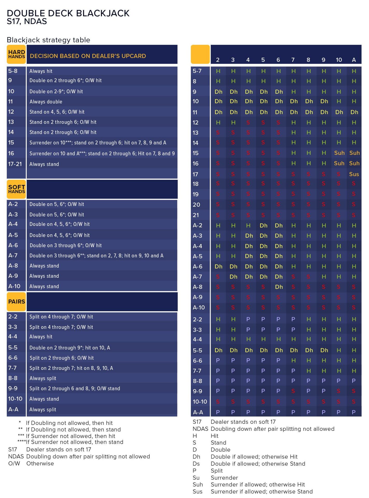 Double Deck basic strategy charts available