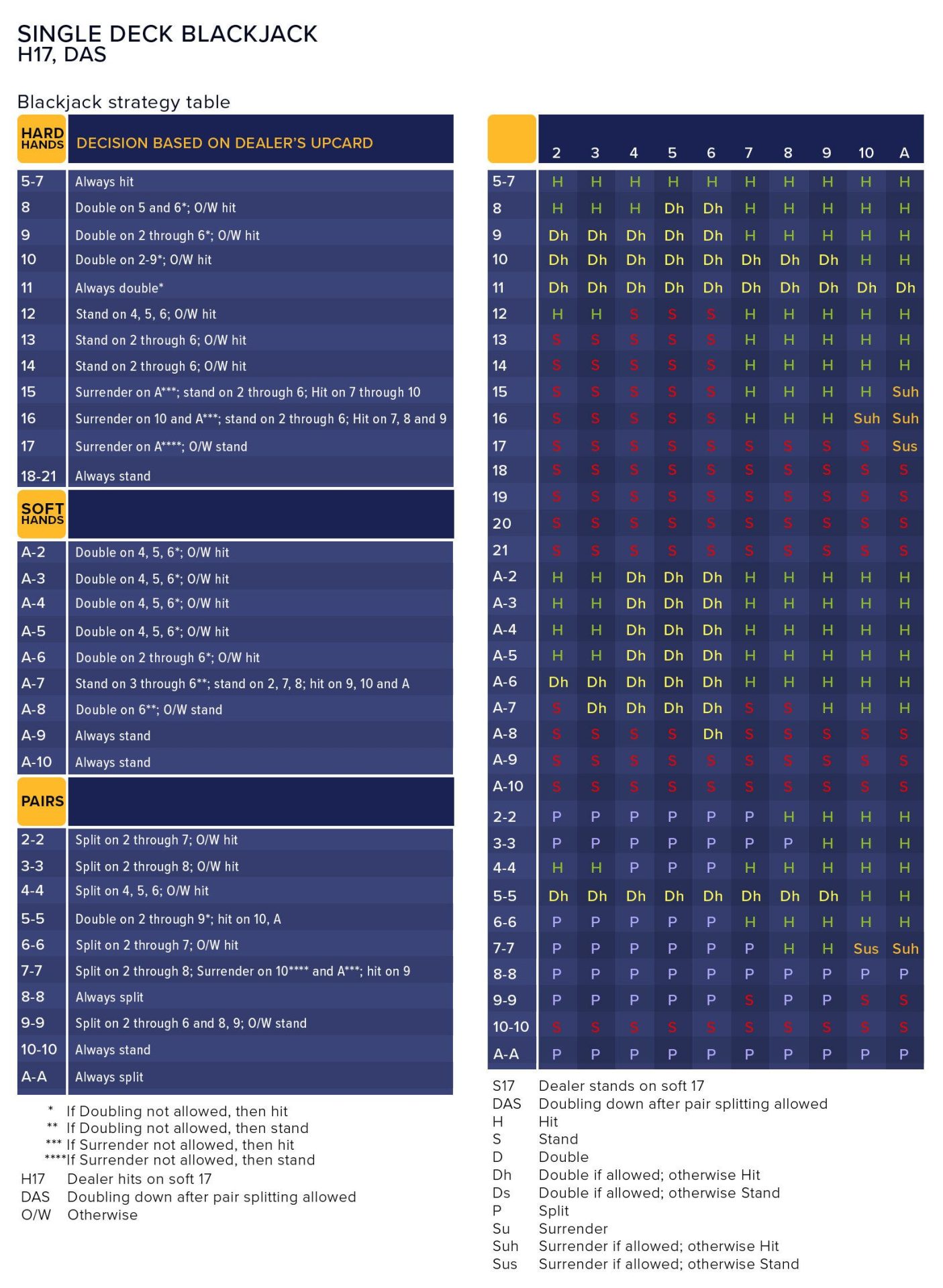 Dealer stands on 17 (H17): The dealer will hit all soft 17 hands