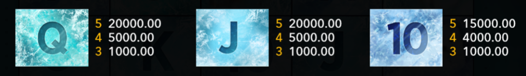 The medium-paying symbols of the Northern Heat slot are the Ace and K card symbols, both offering the following payouts for any winning combination: